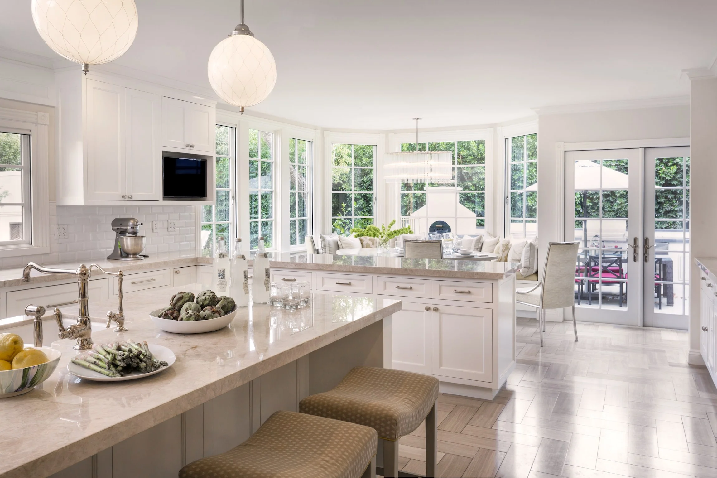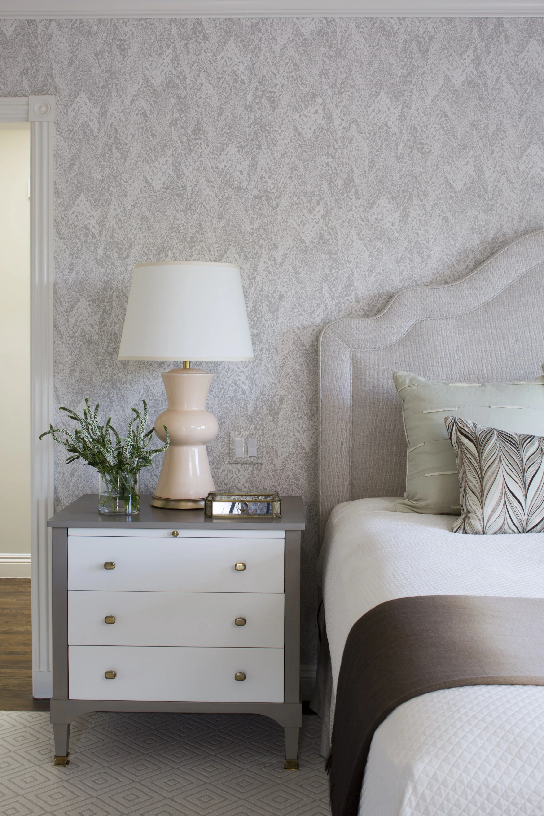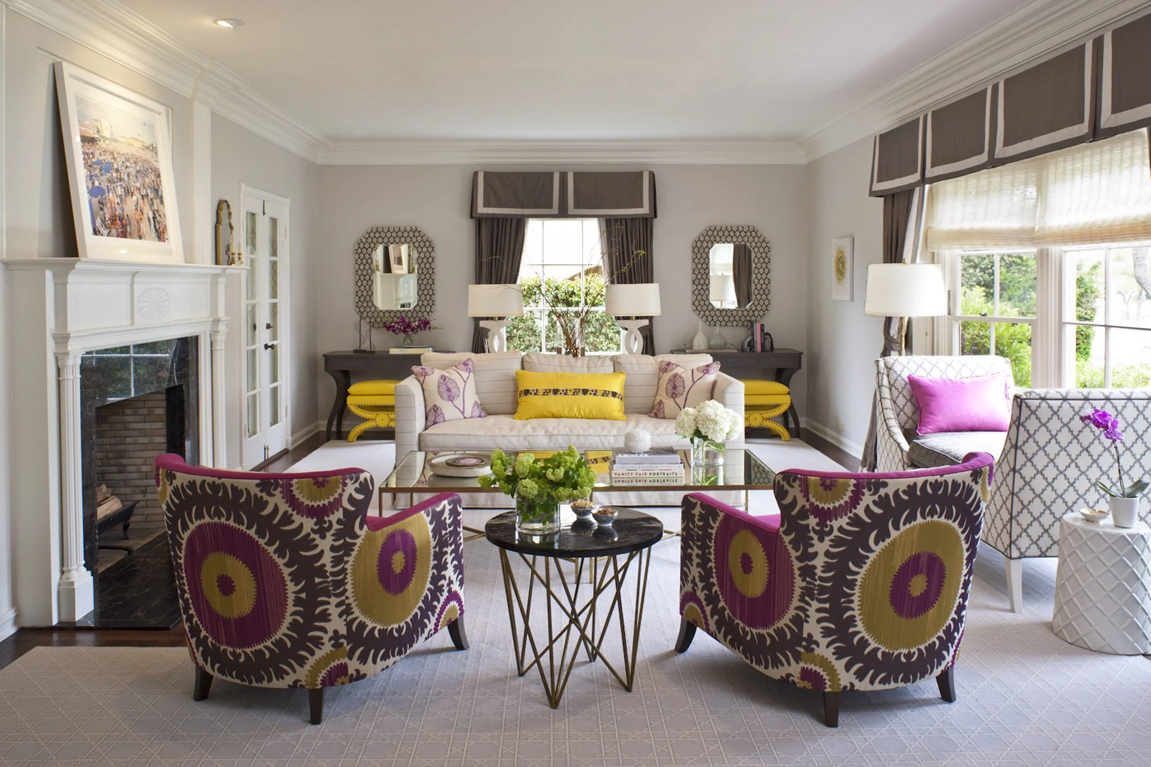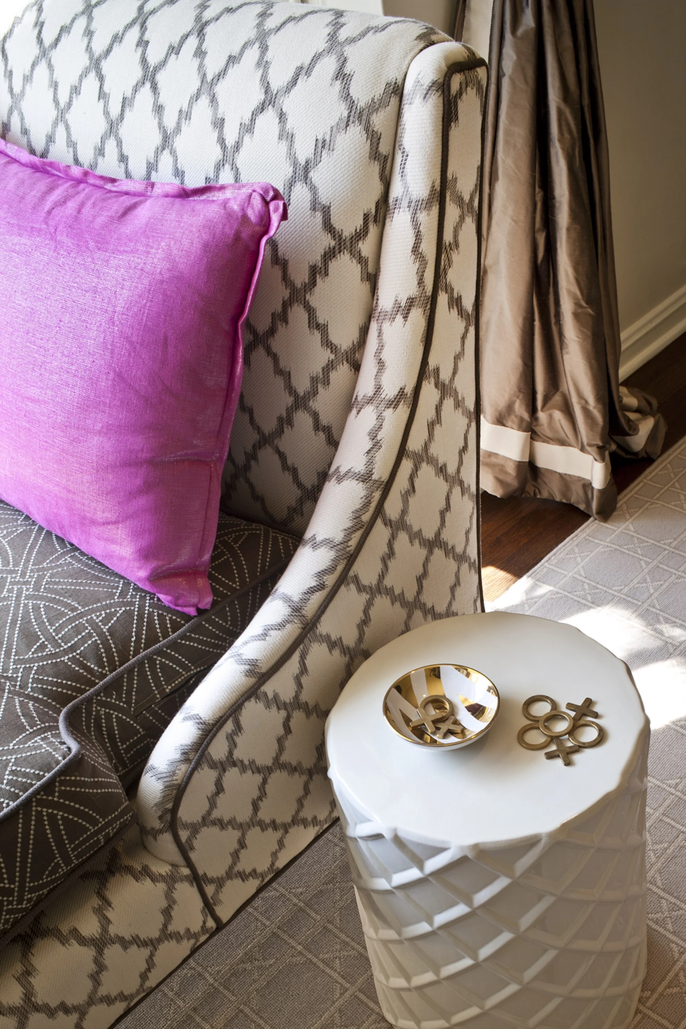 Massucco Warner is a full service interior design and decoration firm serving the Los Angeles and Seattle residential areas. Including: Larchmont, Windsor Square, Hancock Park, Beverly Hills, Bel Air, Hidden Hills, Pacific Palisades, Malibu, Holmby Hills, Montecito, Newport, and Santa Barbara. As seen on Open House TV, this classic, traditional Beverly Hills home designed by Massucco Warner features colorful, fresh interiors with custom furnishings, bold patterns, and quatrefoil accent chairs. It also features a sleek grey butlers pantry bar with brass accents, a bright orange chevron patterned ceiling in the powder room, and stunning quartz countertops in the kitchen. The master bathroom features marble countertops and a custom vanity and a custom man cave and sports room features.