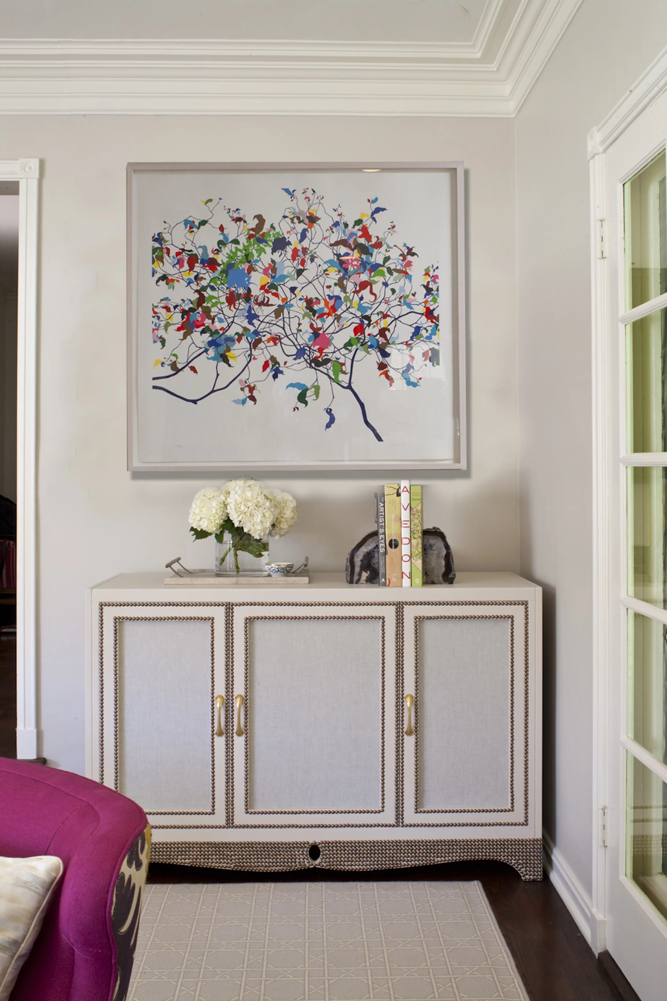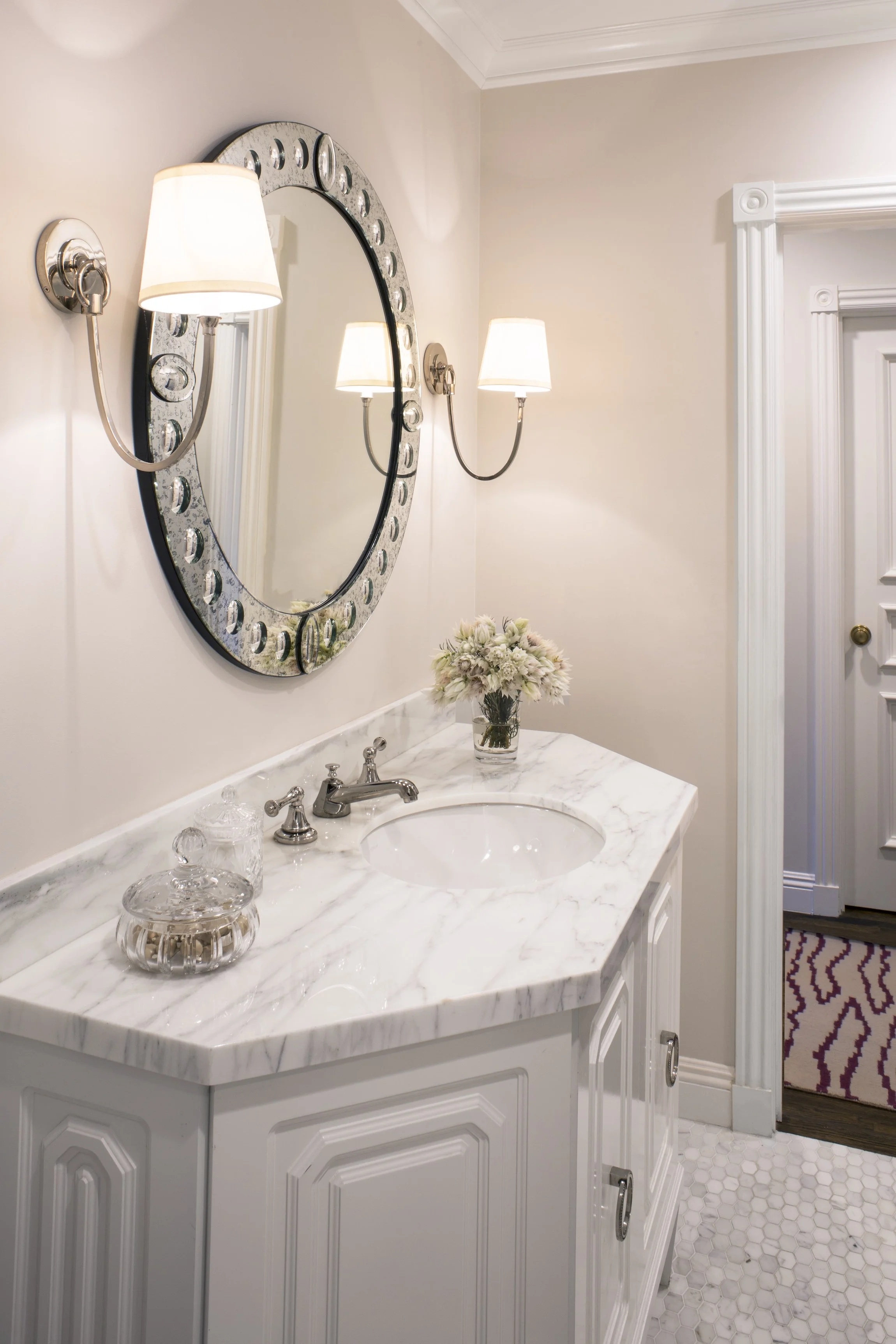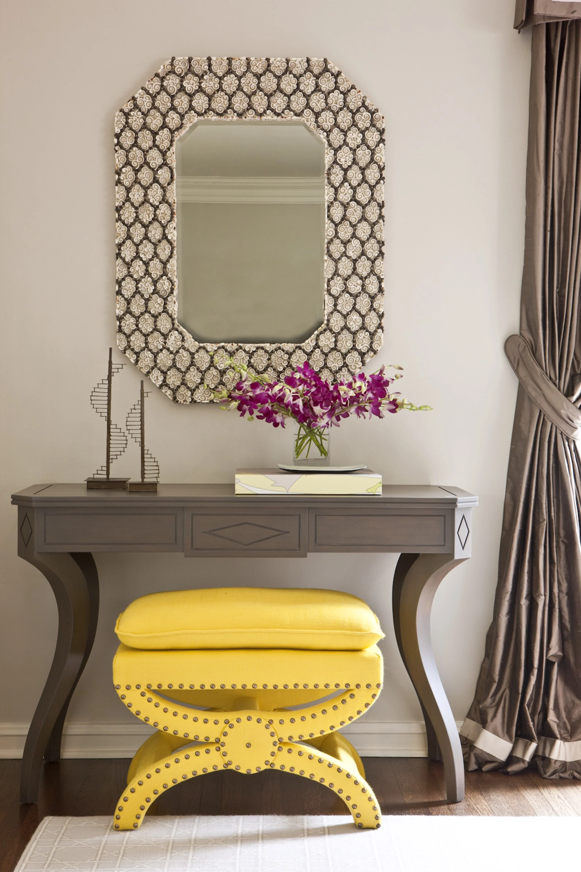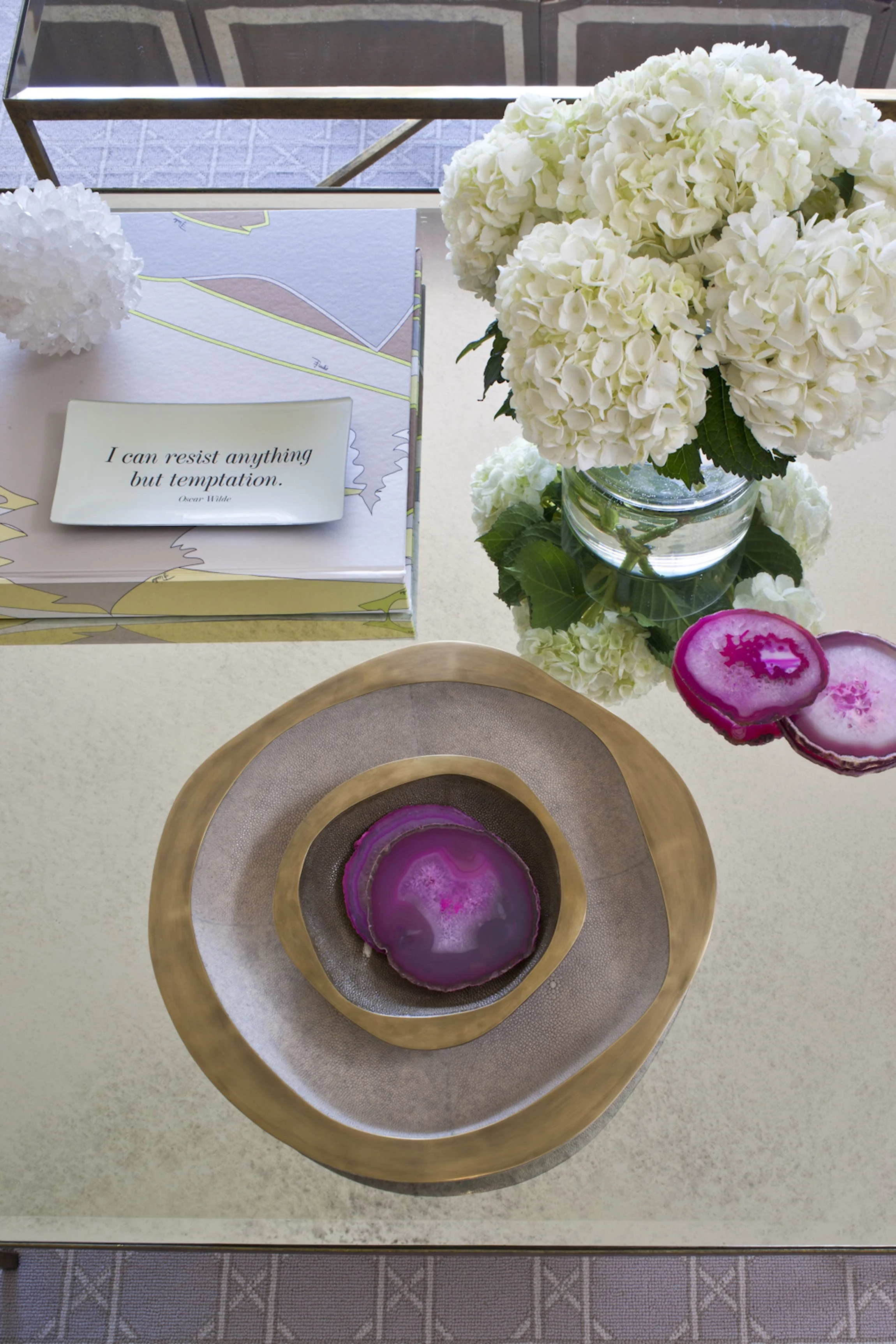 Massucco Warner is a full service interior design and decoration firm serving the Los Angeles and Seattle residential areas. Including: Larchmont, Windsor Square, Hancock Park, Beverly Hills, Bel Air, Hidden Hills, Pacific Palisades, Malibu, Holmby Hills, Montecito, Newport, and Santa Barbara. As seen on Open House TV, this classic, traditional Beverly Hills home designed by Massucco Warner features colorful, fresh interiors with custom furnishings, bold patterns, and quatrefoil accent chairs. It also features a sleek grey butlers pantry bar with brass accents, a bright orange chevron patterned ceiling in the powder room, and stunning quartz countertops in the kitchen. The master bathroom features marble countertops and a custom vanity and a custom man cave and sports room features.